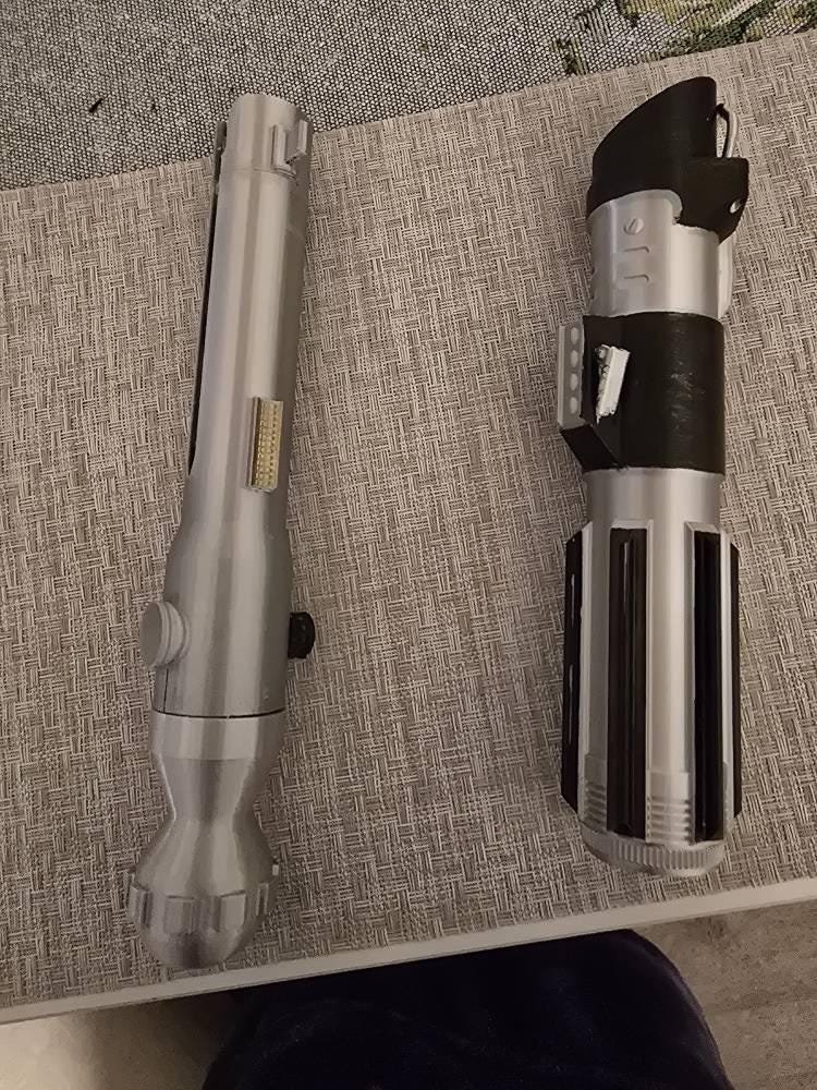 These saber hilts are 3d printed hand painted and clear coated for durability, if you don’t want the saber painted let me know before you order and put a note on the order.